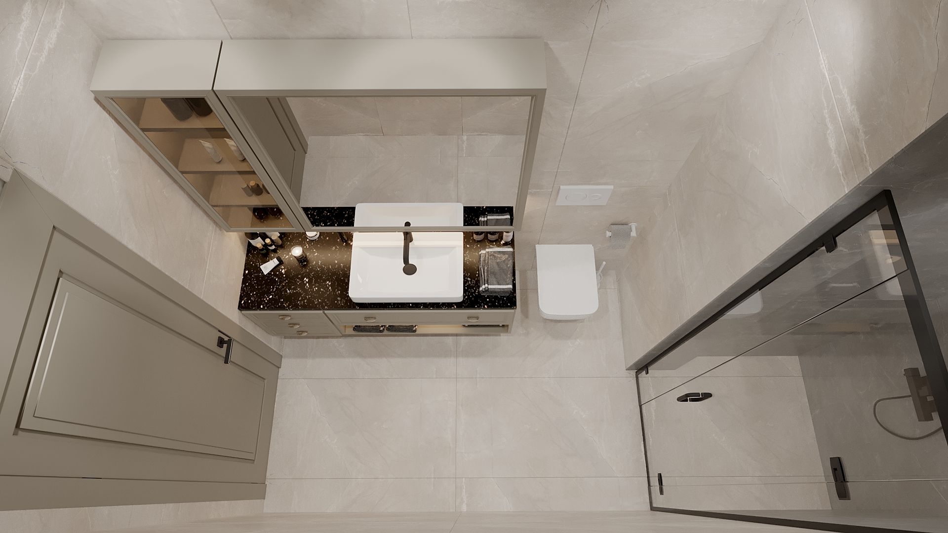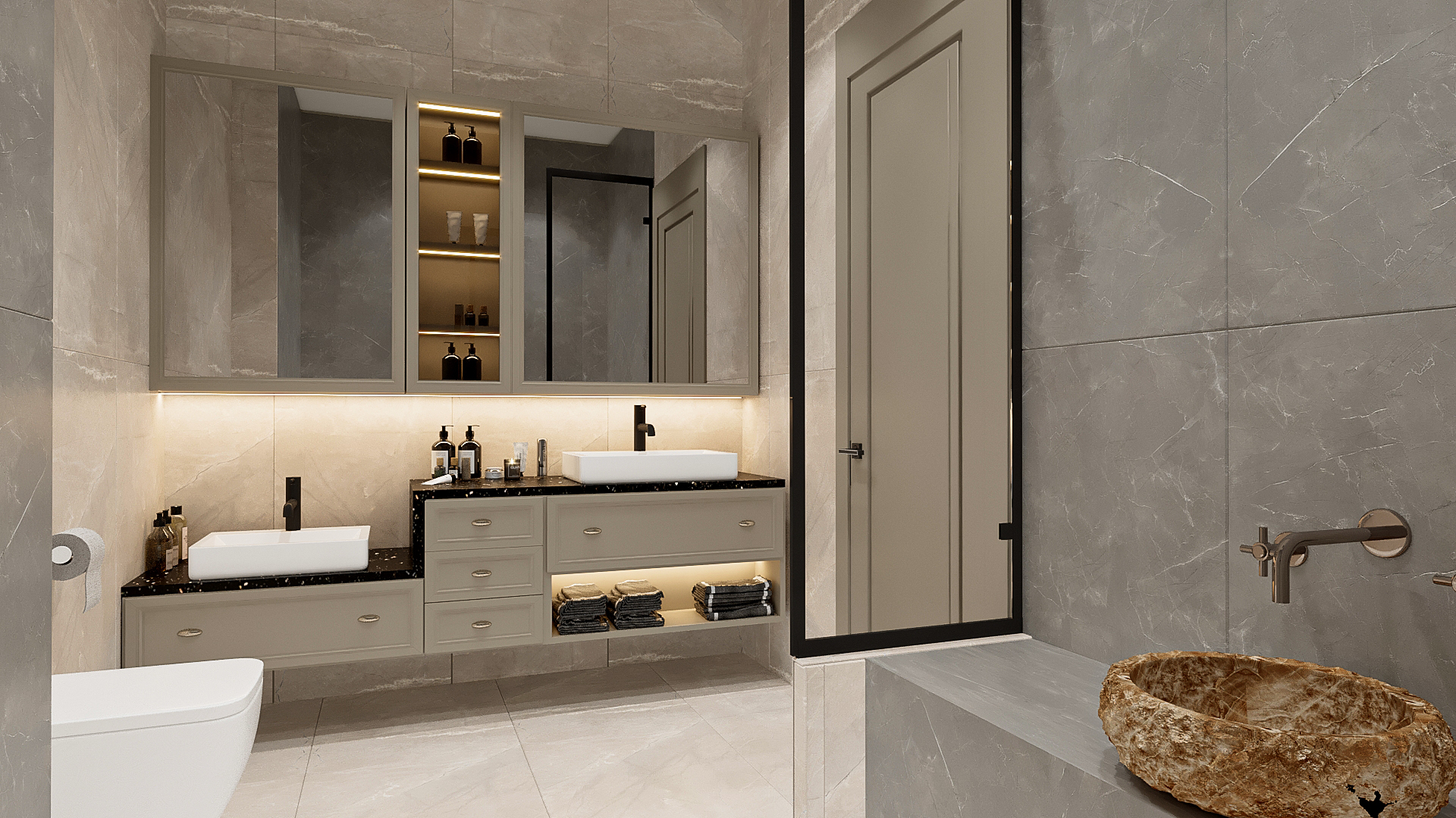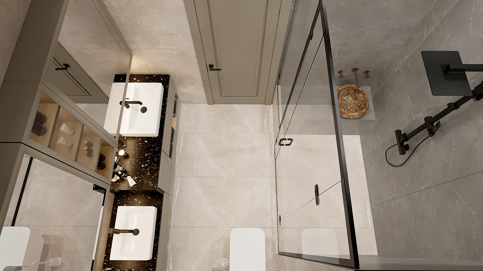 Banyoda duşakabine extra özel tasarlanmış Türk hamam ünitesi mevcuttur.