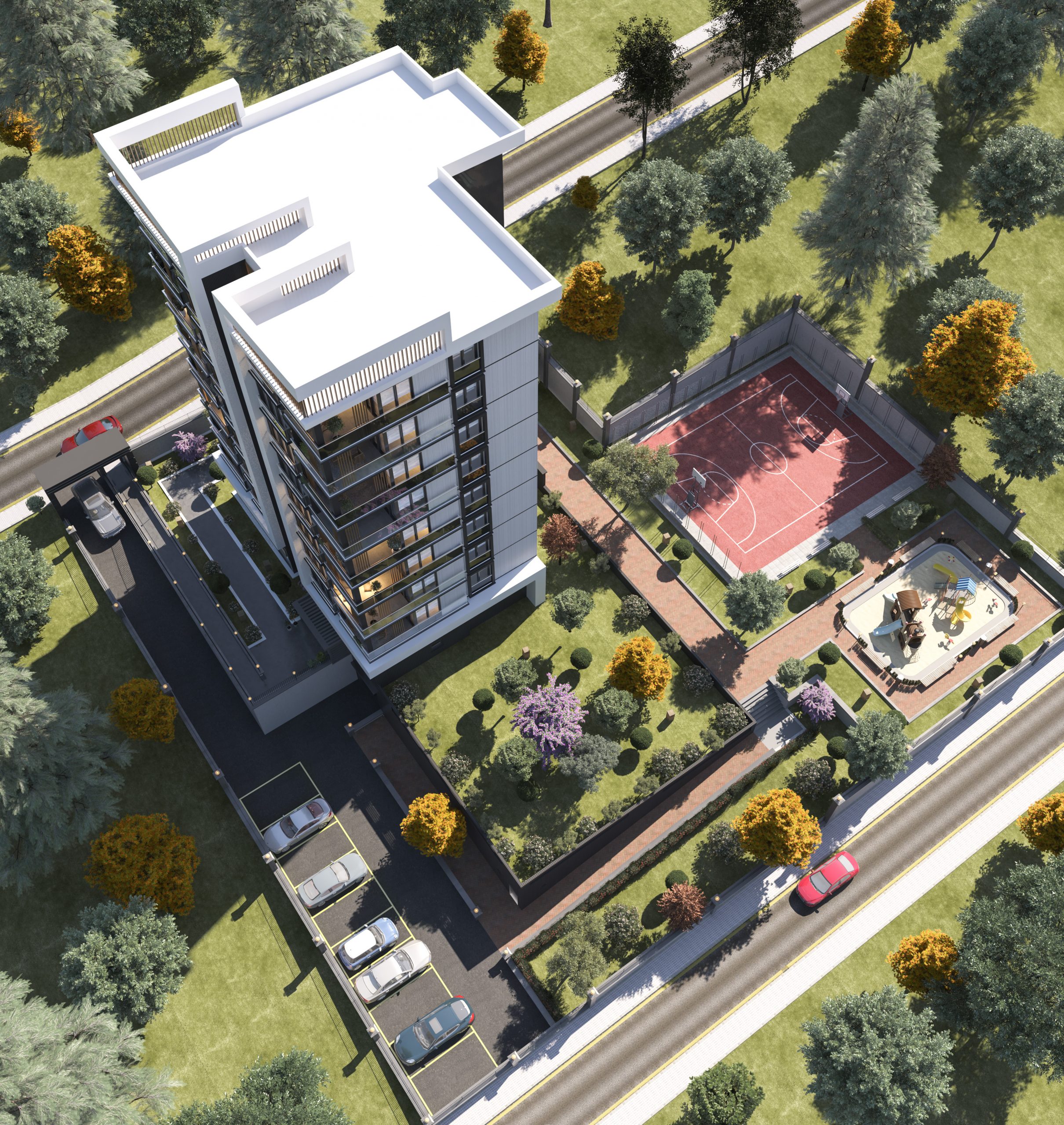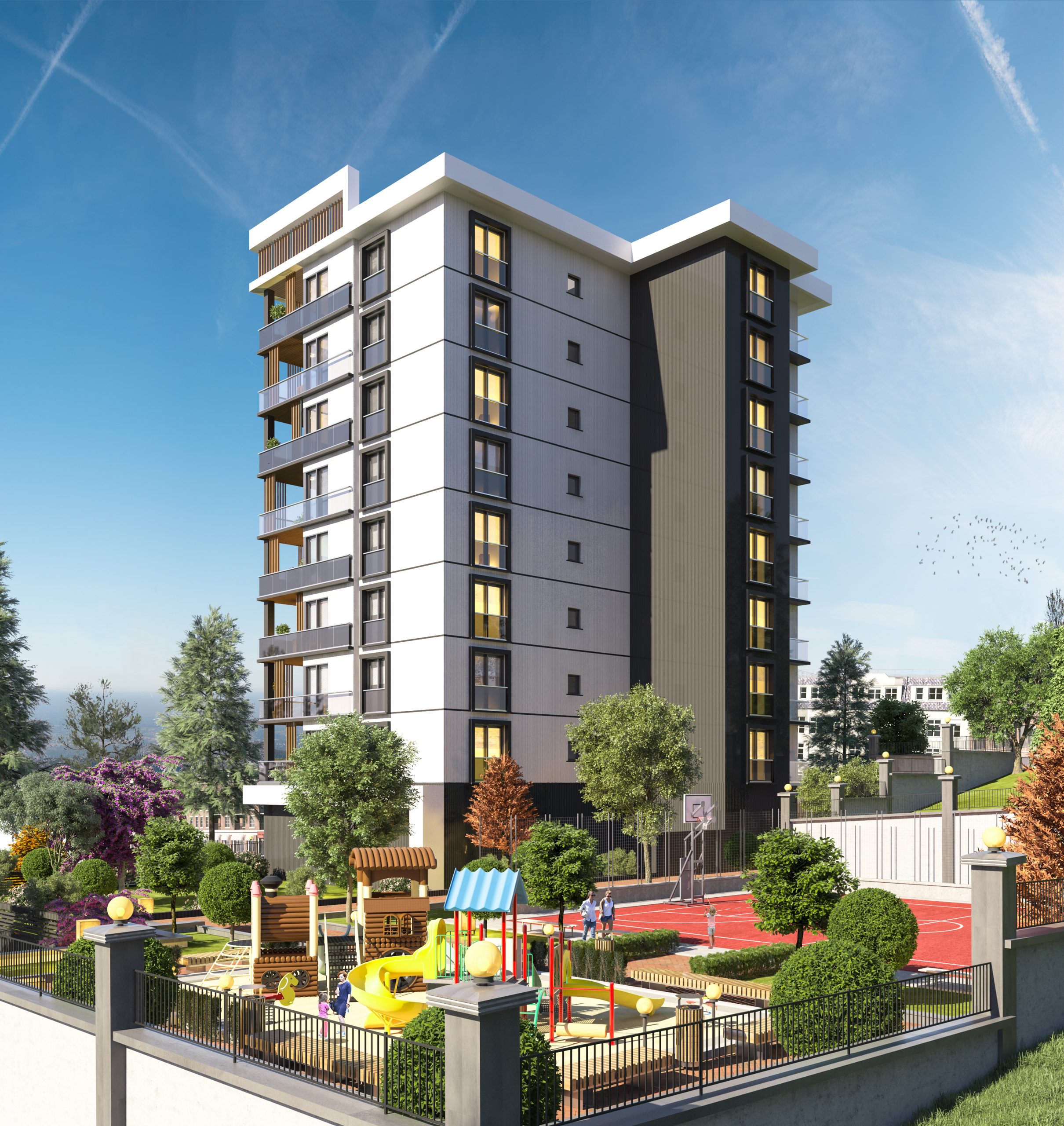 Basket sahası, çocuk oyun alanları, kamelyalar ve sosyal alanlar ile harika peyzaj alanları da sunulmaktadır.